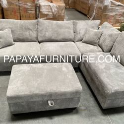 106” New Plush Gray Sectional, Sectional And Storage Ottoman, Sectionals, Sofa, Couch, Gray Couch, Grey Couch, Corduroy Sectional, USB Charger Sofa Di$499Anaheim, CA