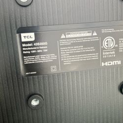 43 Inch TCL TV, 4k and HDR$125Milpitas, CA