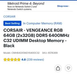 Corsair 64 DDR5 6400 Mhz$800Santa Clara, CA