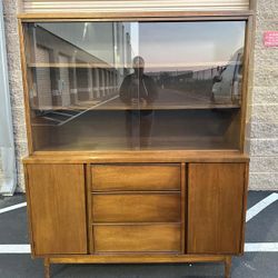 Walnut Mid-century modern cabinet w/glass doors/gabinete de madera de nuez con puertas de vidrio.$450Milpitas, CA