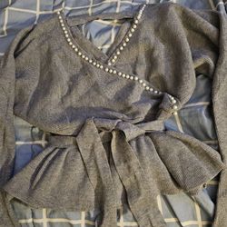 This is a grey long-sleeve peplum sweater-$45$45San Jose, CA