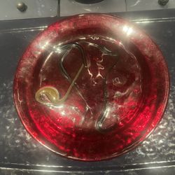 Red Ruby Glass Plate Fused Art Swirl Design Glossy Finish Round Decorative$18Pacifica, CA