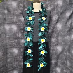 Graduation Open Ti Leaf Ribbon Lei with Plumeria Flowers$65Clayton, CA