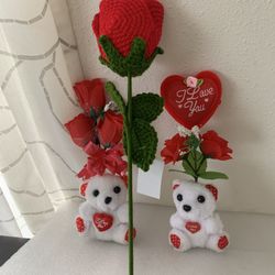 Valentines Gift 16” Crocheted Rose With Two Little Bears$15San Jose, CA