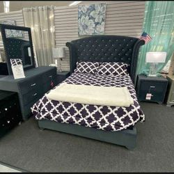🚦New 🚦$10 Down Payment Finance ▪️▪️ Melody Gray 4 Piece Queen Velvet Upholstered Bedroom Set$1,119San Jose, CA