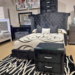 New 🐍$10 Down Payment Finance ✳️Alzire Black 4 Piece Queen Velvet Bedroom Set✳️Queen Bed/ Dresser/Mirror/Nightstand $1,689San Jose, CA