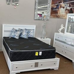 New ❤️ $10 Down Payment Finance ▪️Miranda White 4 Piece Queen Bedroom Set👉Bed with Drawers /Nightstand/Dresser/Mirror$989San Jose, CA