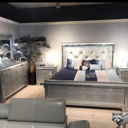 Bling Game Metallic Platinum Bedroom Set Queen or King Bed Dresser Nightstand and Mirror WİTH İNTEREST FREE PAYMENT OPTİONS $2,829Milpitas, CA