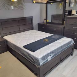 ATTİCUS 5 PCS BEDROOM SET QUEEN OR KİNG BED DRESSER NIGHTSTAND MIRROR AND CHEST WİTH İNTEREST FREE PAYMENT OPTİONS $840Milpitas, CA