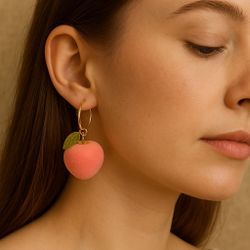 Pink Fuzzy Peach Earrings with Green Leaf Charm – Cute Fruit Hoop Jewelry new$12Foster City, CA