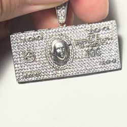 Custom $100 Bill Pendant - Iced Out Moissanite & .925 Silver (9.36g)$140San Jose, CA