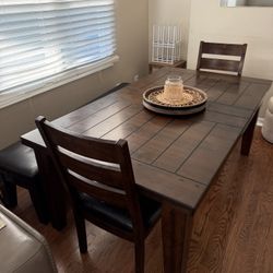 Rustic Farmhouse Solid Wood Dining Table + Bench + Chairs (Expandable)$300Campbell, CA