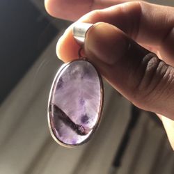 Amethyst Cabochon Pendant Over One Inch In Silver 1.25” Chevron Amethyst Gemstone Birthstone $29San Francisco, CA