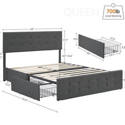 Gray Bed Frame with 4 Storage Drawers, Modern Upholstered Platform Bed with Adjustable Headboard$300Daly City, CA