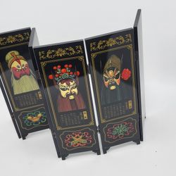 Vintage Miniature Wooden Folding Screen Chinese Facial Makeup of Peking
