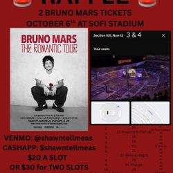 2 BRUNO MARS TICKETS OCT 6 SOFI FOR RAFFLE$30Fresno, CA