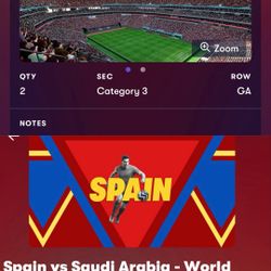 spain vs saudi arabia 2 world cup tickets $1,100Kerman, CA