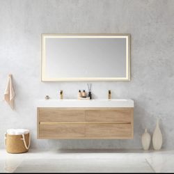 Vinnova Palencia 60-in North American Oak Finish Double Sink Floating Bathroom Vanity with White Eng Countertop and Mirror$1,500Fresno, CA