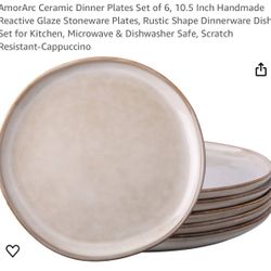 AmorArc Ceramic Dinner Plates Set of 6, 10.5 Inch Handmade Reactive Glaze Stoneware Plates, Rustic Shape Dinnerware Dish Set for Kitchen, Microwave & $30Fresno, CA