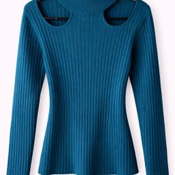 Teal Ribbed Knit Long Sleeve Top with Cutout Shoulders (NWT) $20Fresno, CA