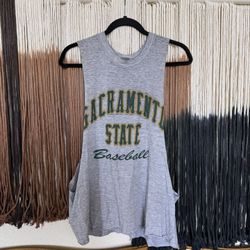 Grey, green and gold Sacramento State baseball cut off tank top; good condition$12Fowler, CA