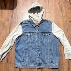 Levis Jacket Mens Blue Denim Trucker Hybrid Hoodie Size 3XL Fits A Like XL$35Fresno, CA