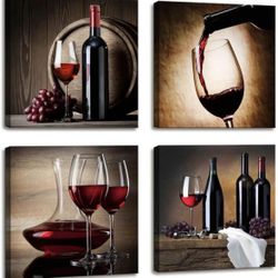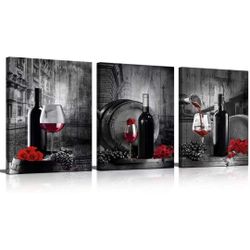 Kitchen Wall Art for Dining Room Still Life Red Wine Rose Canvas Prints Picture Cityscape Background Paintings for Restaurant Living Room Bedroom Wall$39Fresno, CA