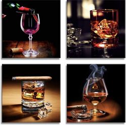 kitchen Decorations Coffee Decor Wine Cup Cigar Pictures Canvas Art Home Decor Framed Art Ready to Hang - 4 Panels Modern Artwork for Walls Painting C$49Clovis, CA