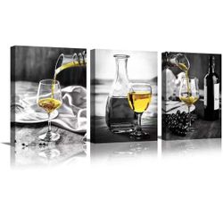 Kitchen Wall Art for Dining Room,Wine Painting Artwork Poster Black White Canvas yellow Wine In Cups Pictures For Home Decorations$39Clovis, CA