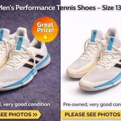Title: Adidas Men’s Performance Tennis Shoes – White/Blue – Size 13.5 $45Fresno, CA