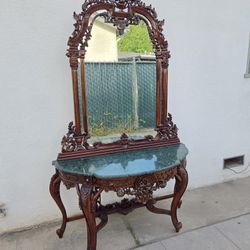 Rococo Style Carved Wood and marble Top Pier Table and Mirror