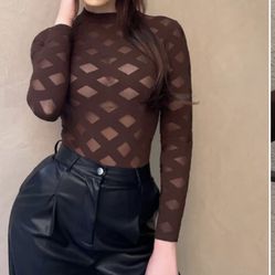 Fashion Nova Brown Sheer Diamond Pattern Long Sleeve Bodysuit$12Fresno, CA