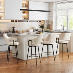 New COLAMY (Set of 2) Beige Faux Leather Modern Swivel Bar Stools $55Fresno, CA