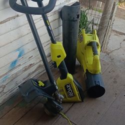 displays a Ryobi 40V HP Brushless string trimmer and a leaf blower. Key features of the string trimmer include:$140Reedley, CA