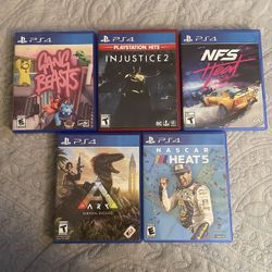 Ps4 Games Gang Beast, Injustice 2, Need For Speed Heat, Ark Survival Evolved And NASCAR Heat 5$25Hanford, CA