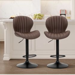 New COLAMY Brown Faux Leather swivel Bar Stools (Set of 2)bar stools) $45Fresno, CA