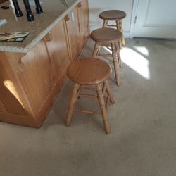 🪑Solid Pine Wood Bar Stools (Set of 3) – $150 (OBO) 🪑$150Fresno, CA