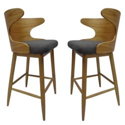 Kamryn Mid-Century Modern 30.25 in. Natural Wooden Bar Stools with Charcoal Fabric Seat Cushion (Set of 2)$50Fresno, CA