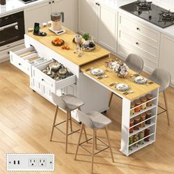 Large Kitchen Island with Extendable Dining Table and Power Outlet, Rolling Kitchen Island Cart on Wheels with 2 Storage Cabinets & 2 Drawers & 3 Spic$140Upland, CA