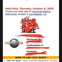 2 Universal Studios Hollywood Tickets$150Los Angeles, CA