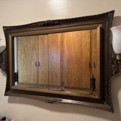 Double Wide Sliding Mirror Medicine Cabinet With Detailed Wood, Trim, And Great Lighting Rare Antique $50Long Beach, CA