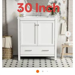 30 in. W Freestanding Single Sink Solid Wood Frame Bath Vanity in White with White Ceramic Top$200Chino Hills, CA
