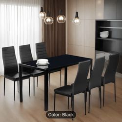 6-Seater Dining Table Set with 6 Faux Leather Chairs, 51-inch Tempered Glass Safety Table $185Irvine, CA