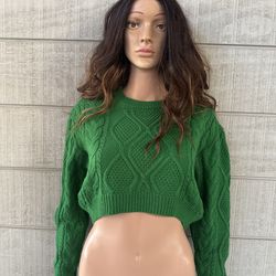 Women’s Green Knitted Cropped Long Sleeve Top Size Medium$5Pico Rivera, CA