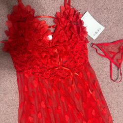 New xl red heart sheer ruffle dress nightgown valentines lingerie set babydoll$11Mount Baldy, CA