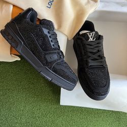 LV Trainer sneakers in black, featuring a full crystal-encrusted design.$350East Los Angeles, CA