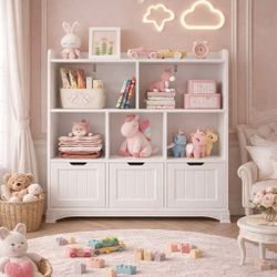 Toy Storage Cabinet and Kids Bookcase with 3 Movable Drawers and 6 Open Shelves Featuring Fall Prevention Barrier for Playroom Nursery Kids Room Organ$100Fontana, CA