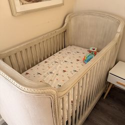 Restorations Hardware Belle Upholstered Crib + Toddler Conversion Kit + mattress$300Los Angeles, CA