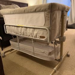 Baby Bassinet Bedside Sleeper 3-in-1, Easy Night Feeding with One-Side Fold & Rolling Wheels, Breathable Mesh, 6-Height Adjustable, Soft Mattress for $80Chino, CA