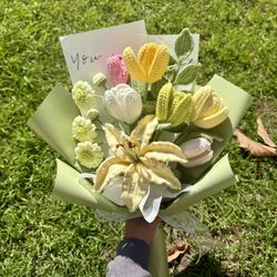 Crochet yellow lily and green daisies bouquet$35Temple City, CA